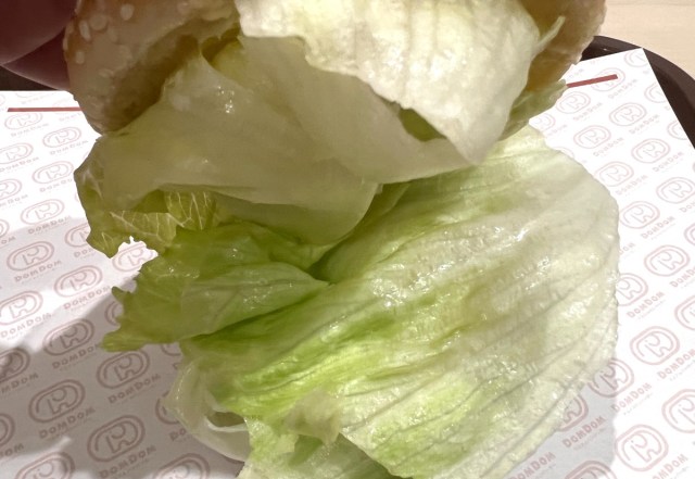 Now, they’re turning their attention to lettuce. Other chains, like Mos Burger, have come out with lettuce-heavy offerings, often substituting the buns for several leaves, but Dom Dom is going the other way with it, by stuffing a bun with as much lettuce as they can, and not much else.