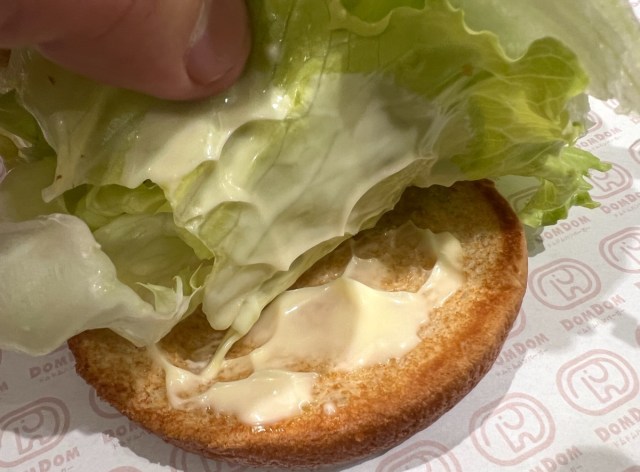 There was also some mayo on the bottom bun. On the bright side, this was probably by far the healthiest burger Dom Dom has ever put out, if you could even call it a burger.