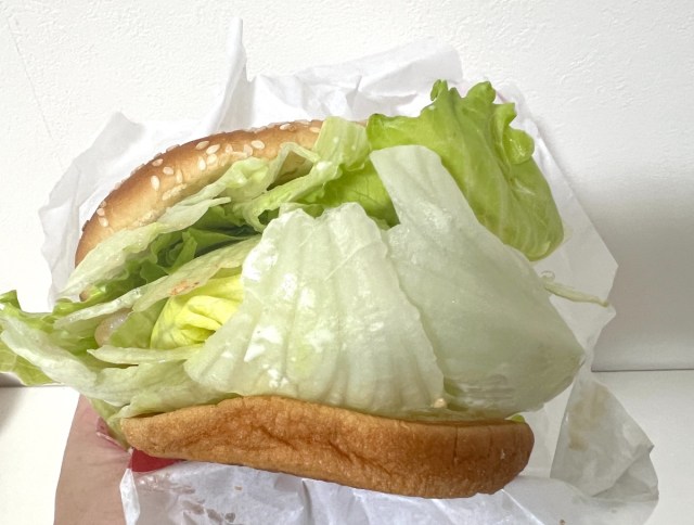 Our writer Kouhey headed down to his nearest location to try one of these Almost All Lettuce Burgers out for himself for 690 yen (US$4.30). Even though it was basically just lettuce on a bun, it still took a few minutes after ordering for it to arrive.