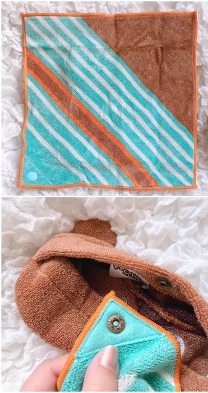 And since the strap has a snap too, you can even attach it to a hook or towel rack and hang the towel up for use at home.