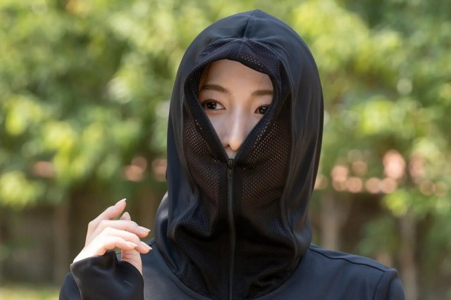 The true purpose of the Ninja Parka, though, isn’t chic shinobi style. It’s to provide protection from UV rays. See, in addition to being the land of the rising sun, Japan is also a land of harsh sunlight during the warmer months of the year. Staying in the shade isn’t always so easy to do, though. Without daylight savings the sun comes up very early in Japan, and a reliance on public transportation means that, at the very least, you’re going to be spending a chunk of time walking to/from the train station or bus stop when venturing out. Between the Ninja Parka’s UV-resistant material, long sleeves, hood, and mesh mask, though, you can keep the sun off of yourself, while still seeing where you’re going.