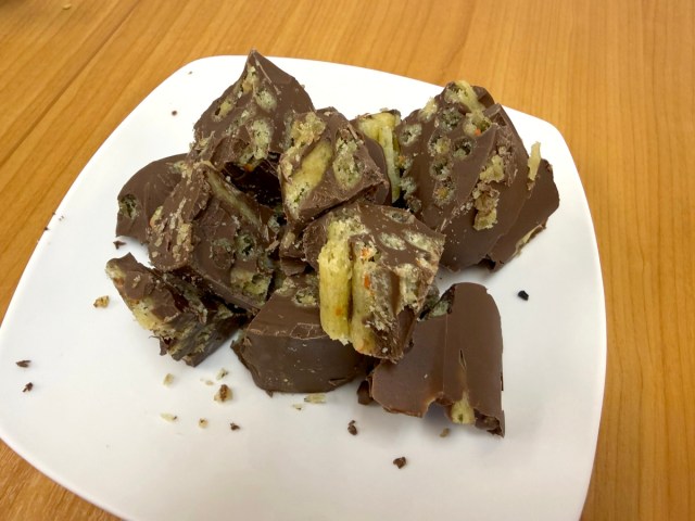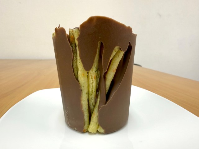 Now all that was left to do was try it, and after popping a chunk into his mouth, P.K. opened his eyes wide in surprise. Not only was his creation insanely delicious, it was an exciting experience in texture as well. Super hard and crunchy on the outside, but tender on the inside, the salty sweet combination was like the best of two decadent worlds, and P.K. reckons it might actually be better than the Pringles Chocolate everyone is raving about right now.