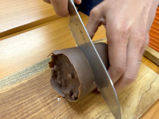 ▼ After the first cut, the chocolate ratio might seem a little high…