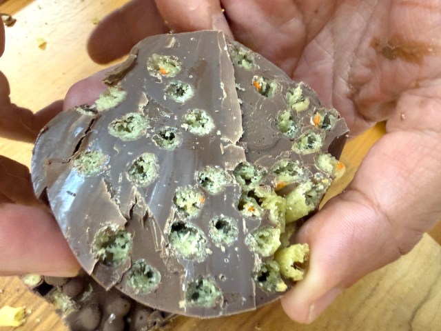 Now we get to the fun part – ripping the tub away from the hardened chocolate.