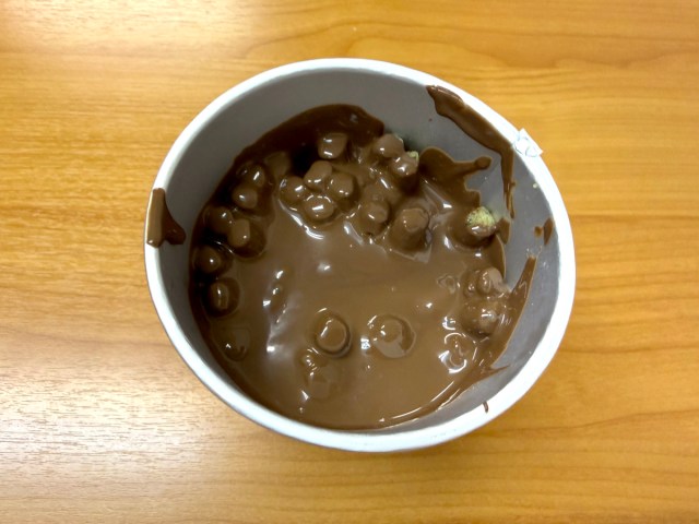 ▼ Then open the snack tub and pour in the melted chocolate.