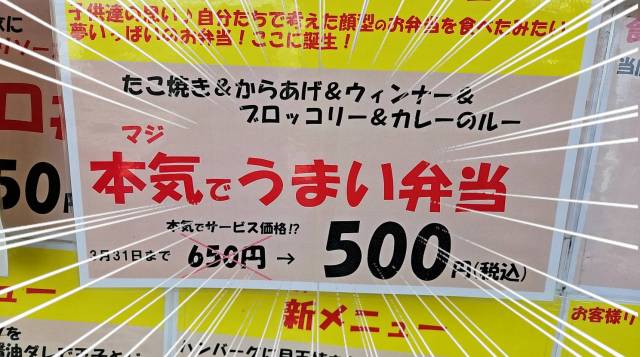 ▼ The “Maji Honki de Umai Bento“, which incorporates slang and roughly translates as “A No-joke Seriously Delicious Bento“.