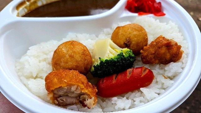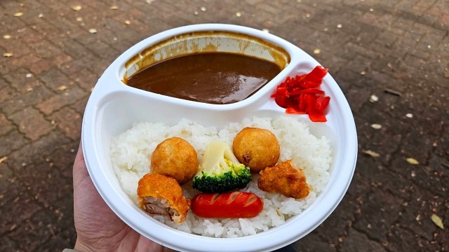 Curry is always a guaranteed win, beloved by people of all ages, and this one looked seriously delicious. The extra surprises here, though, were takoyaki (fried octopus balls), fried chicken, and a small sausage, rather unusual partners for curry but all great in their own right, with a floret of broccoli adding colour and vitamins to the indulgent meal.