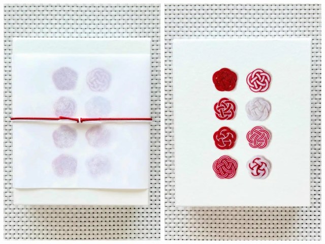 What first attracted us to the product was the elegant packaging, which had an adorable “ume mizuhiki” design on the box, slightly concealed by delicate paper. Ume mizuhiki are auspicious knots often seen at celebratory occasions such as weddings, and the red-and-white hues were another auspicious element that had us instantly reaching for them.