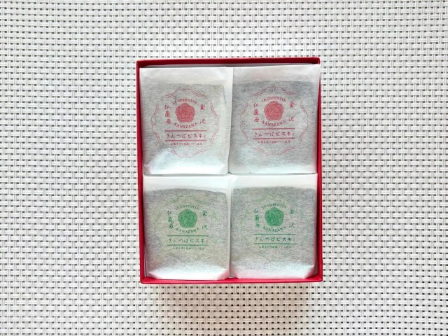 Kintsuba is a traditional Japanese confection with a long history and deep roots in Kanazawa, where tea ceremony culture is still very much alive. Kintsuba Biski is a Western-style reinterpretation of this classic sweet, and the set we purchased, for 1,780 yen (US$11.14), included two plain and two matcha pieces.
